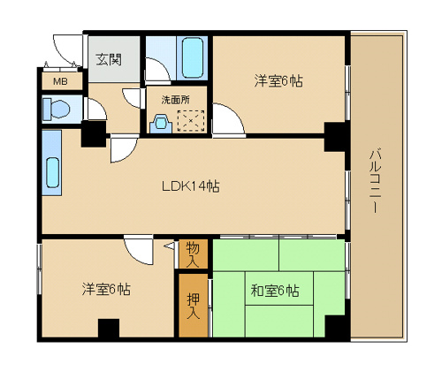今回の間取りは3LDKタイプとなっております。